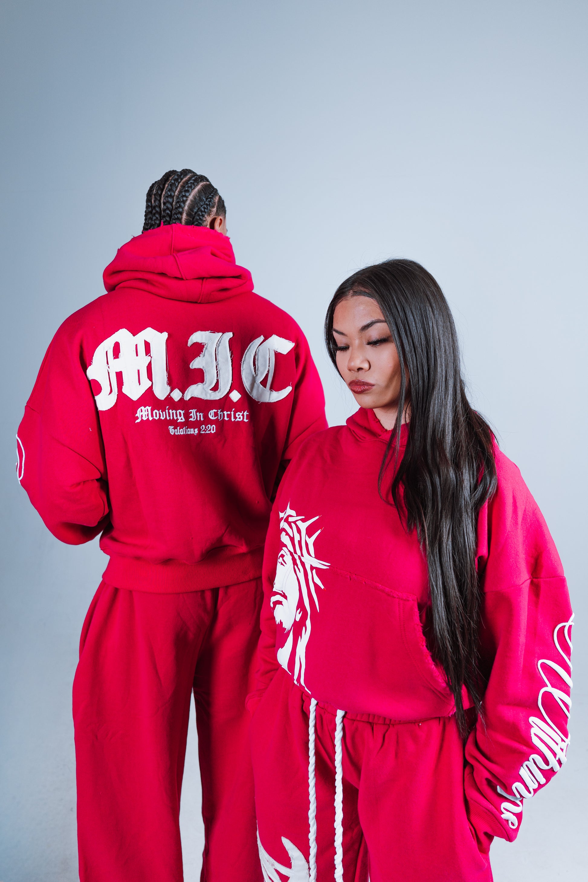The Moving In Christ (MIC) Bundle brings together our signature hoodie and matching sweatpants for a complete look rooted in faith and discounted! The hoodie features an image of Jesus crowned in thorns along with “MIC” (MovingInChrist) on the back, finished with beautiful embroidery that makes a bold statement of unwavering faith—representing that your movement is led by the One who gave everything for you and for us.